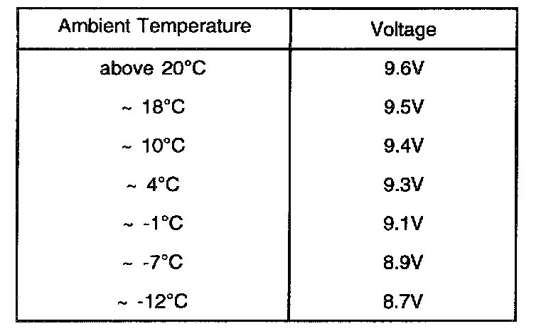 1. When discharging the battery for 15 seconds at half the rated current, the battery voltage should be more than the voltage shown in the above table.