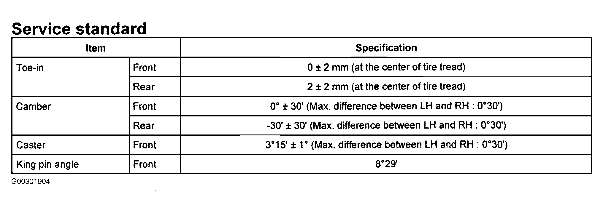 For wheel alignment specifications, see