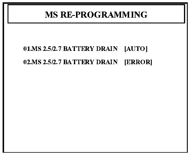 3. Select "02. MS 2.5/2.7 BATTERY DRAIN [ERROR]" and press the "ENTER" key.