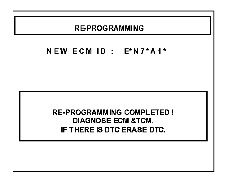 8. When the "REPROGRAMMING COMPLETED" message is displayed, check the new ECM ID displayed on the Hi-Scan Pro screen to verify that the correct ECM software has been downloaded. Refer to the ECM SPECIFICATIONS in this TSB for the ECM ID listing. Turn the Hi-Scan Pro OFF to complete the download procedure.