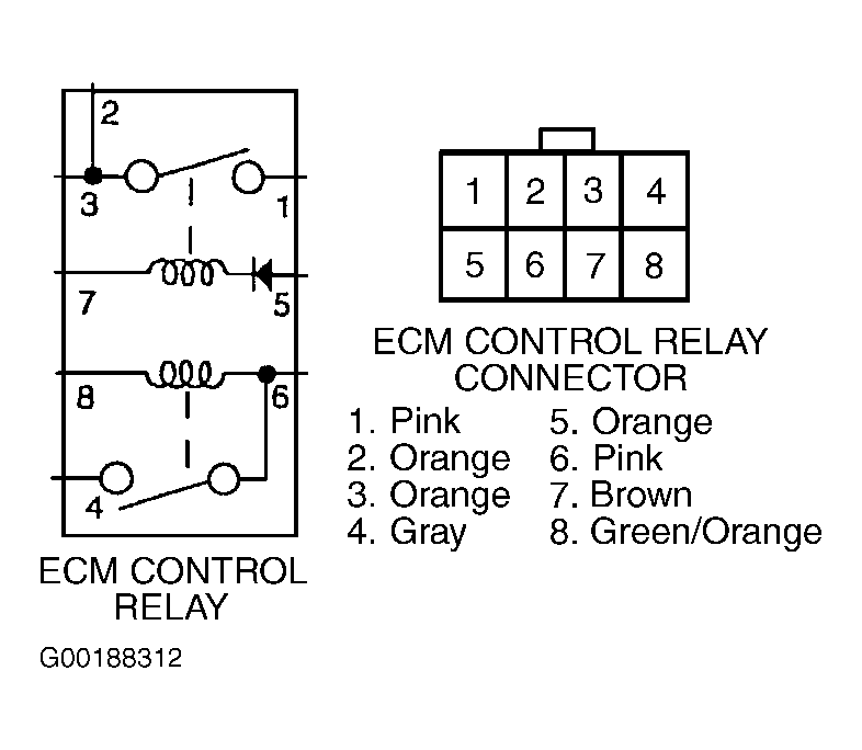 1. Remove ECM control relay located in vehicle right side of dash. See Fig 1. Check for continuity between relay terminals No. 1 and No. 3. See Fig 2. If continuity does not exist, go to next step. If continuity exists, replace relay.
