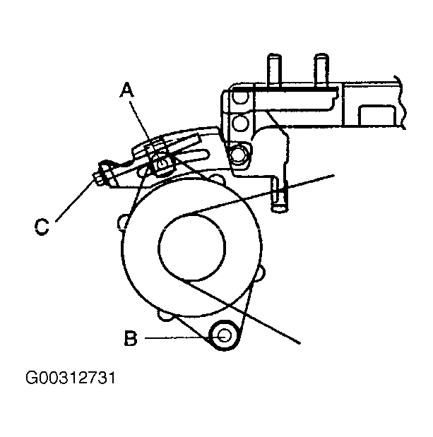 - Relieve tension on drive belt by rotating adjustment bolt "C".