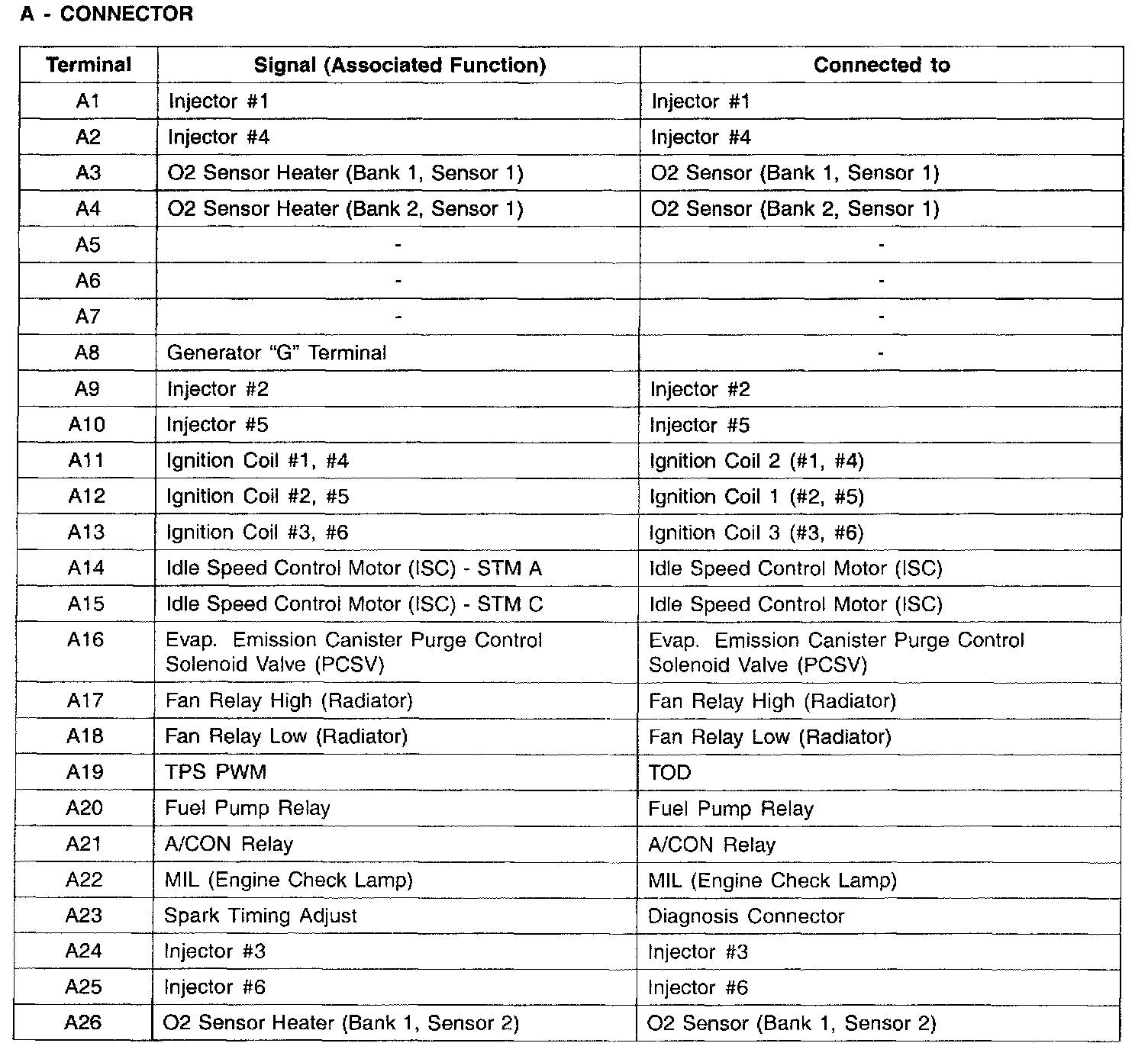 Connector A - (A1-A26):