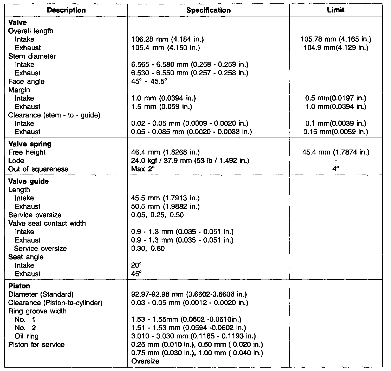 Specifications