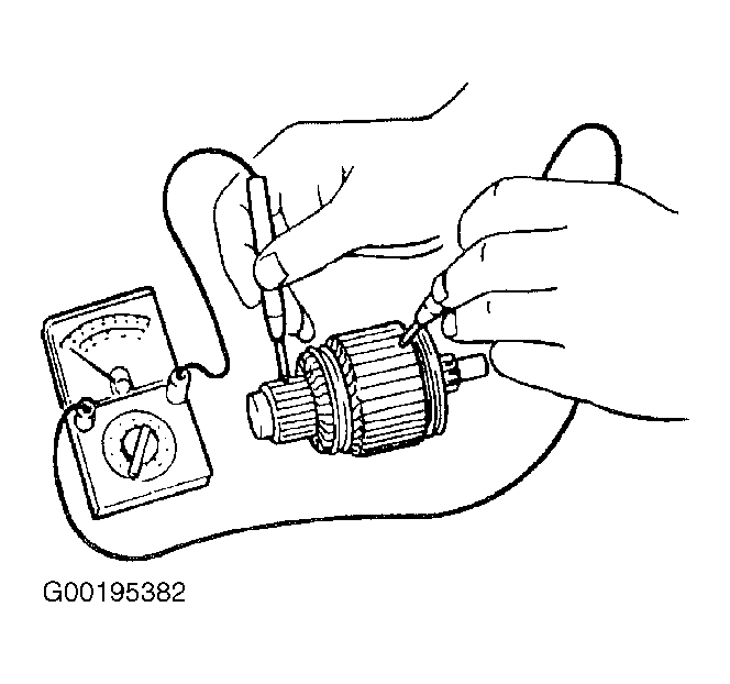 - Using ohmmeter, check continuity between commutator and core. See Fig 1