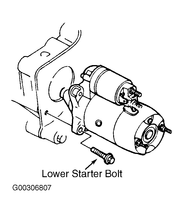 - Insert lower starter bolt and tighten to specification. See TORQUE SPECIFICATIONS