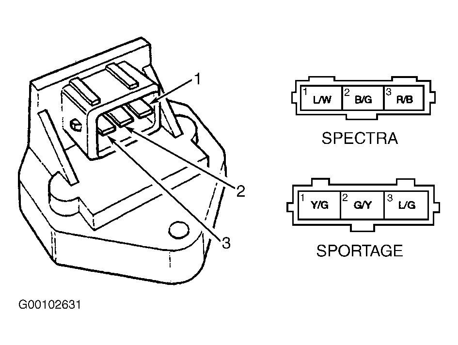 CA sensor is located in right side of engine compartment, behind strut tower. Turn ignition on. Backprobe and measure voltage between CA sensor 3-pin harness connector terminal No. 3 (Red/Black wire) and ground. See Fig 1. Check for voltage spike (less than one volt) while tapping CA sensor bracket. If no voltage spike is observed, replace sensor. For CA sensor removal and installation, see CHASSIS ACCELERATION SENSOR under ENGINE SENSORS & SWITCHES in REMOVAL & INSTALLATION article.