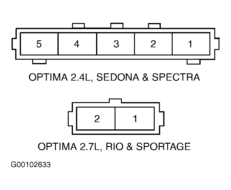Disconnect IAT sensor 2-pin harness connector. Locate IAT sensor on intake manifold, near fuel injector No. 4. Measure resistance between IAT sensor terminals 1 and 2. See Figure. Resistance should be 2.27-2.64 k/ohms at 68°F (20°C). If resistance is not as specified, replace IAT sensor.
