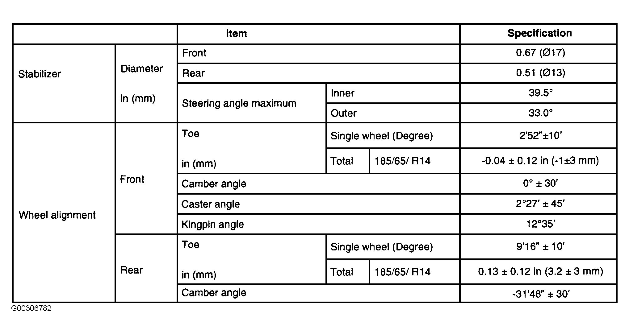 For wheel alignment specifications see