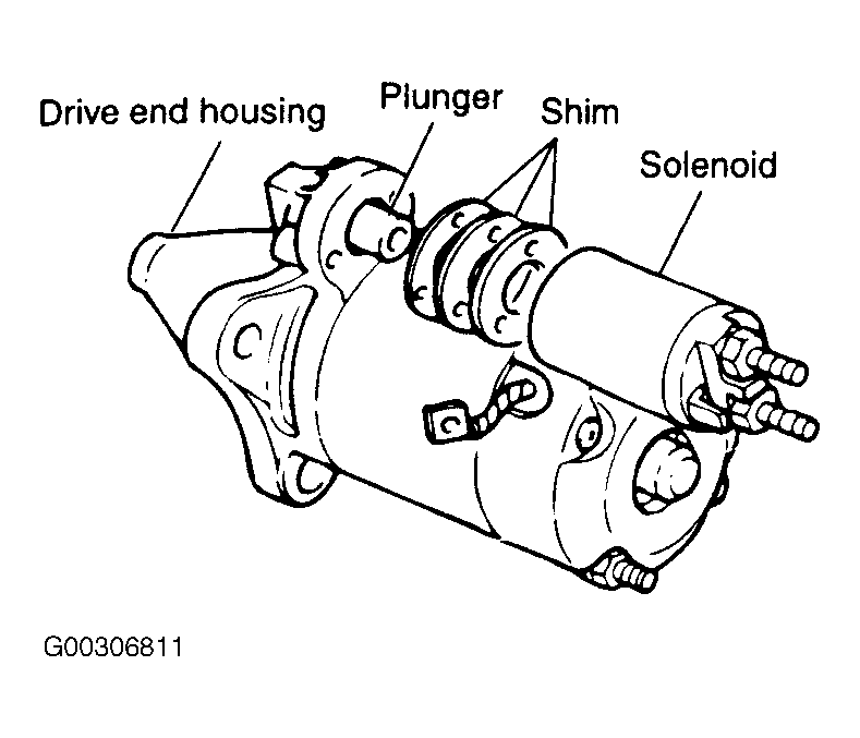 If pinion depth shims are found between solenoid and drive end housing, remove them and set aside. See Fig 1