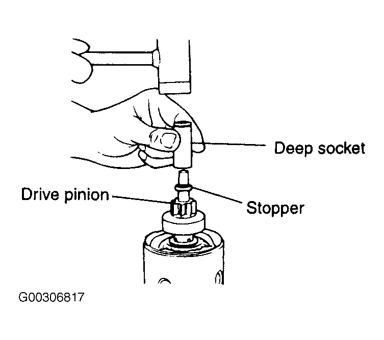 - Drive stopper from snap ring using a deep well socket or similar tool.Fig 7