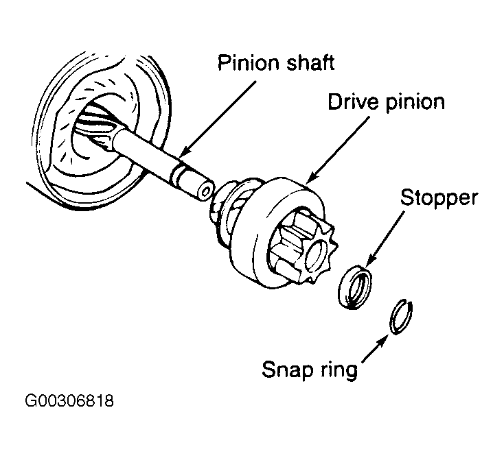 - Remove snap ring from its groove in pinion shaft.