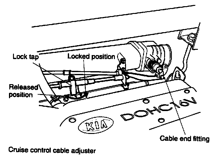 2. Push down cruise cable adjuster lock button until cruise cable adjuster snaps and locks into place.