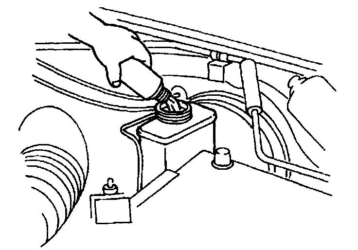 Verify that fluid level in reservoir is between Max and Min lines on reservoir. Add fluid if it is below Min.