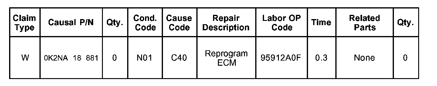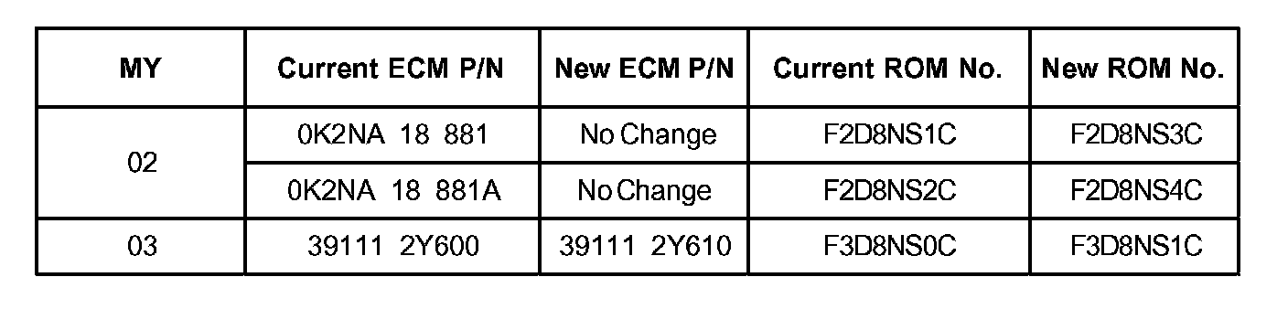 Some O2MY vehicles have ROM ID F2D8NSOC and may give an error message "ECM is a different type". These ECMs will need to be reprogrammed in error mode as P/N 0K2NA 18 881. Password 8881.