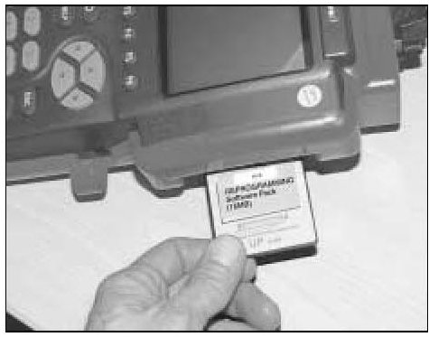2. Remove the program card from the upper slot on the Hi-Scan Pro and insert the reprogramming card.