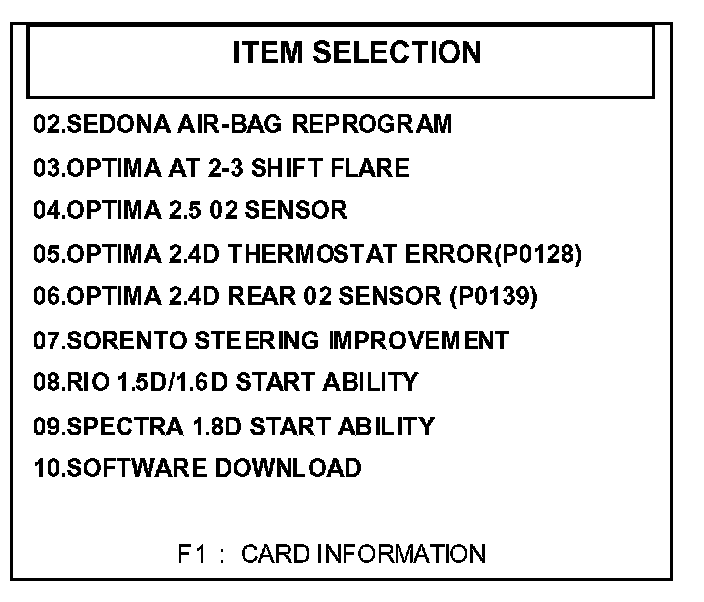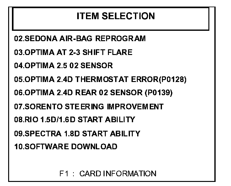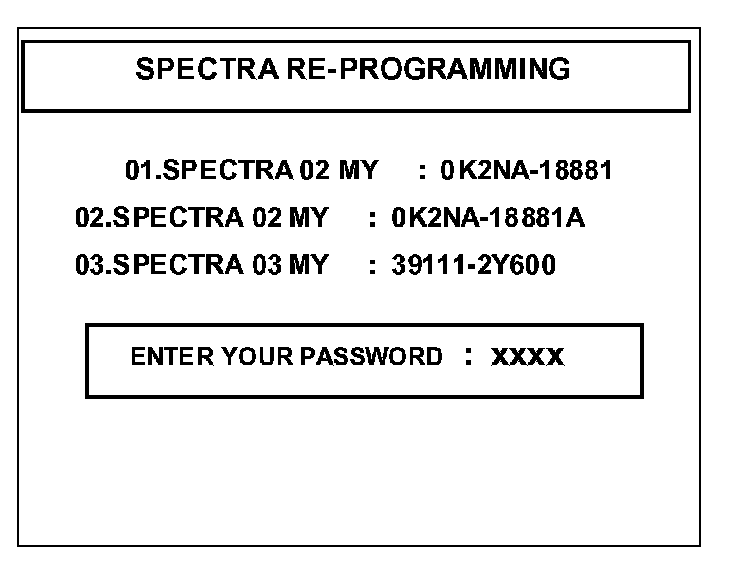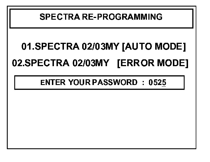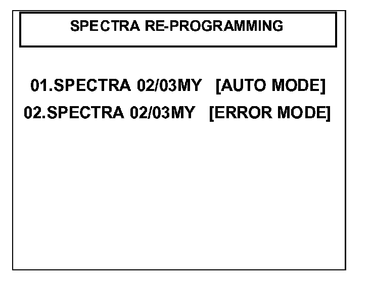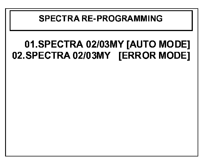 11. Select "02 SPECTRA 02/03 MY [ERROR MODE]" and press the "ENTER" key.