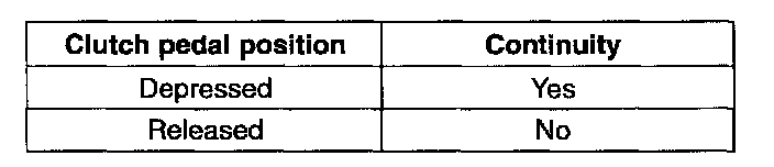 1. Disconnect starter clutch pedal position switch connector.2. Connect an ohmmeter to switch connector.