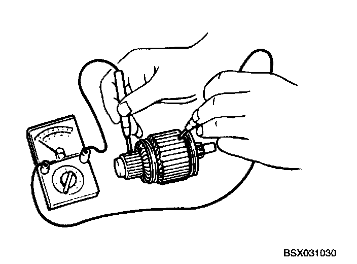 2. Check continuity between commutator and shaft with ohmmeter. Replace armature if there is continuity.