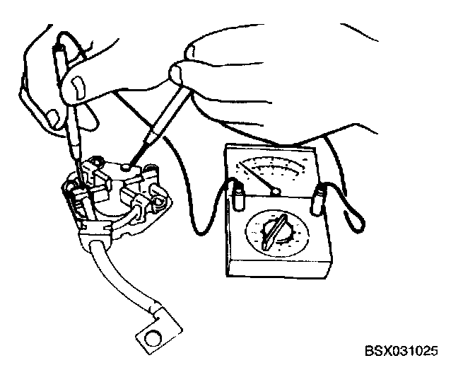1. Check continuity between each insulated brush and plate with ohmmeter. Replace brush holder if there is continuity.