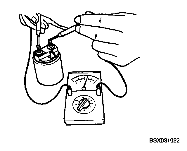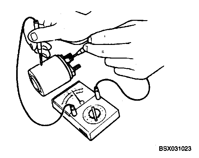 3. Check continuity between M and B terminals with ohmmeter. Replace solenoid if there is continuity.