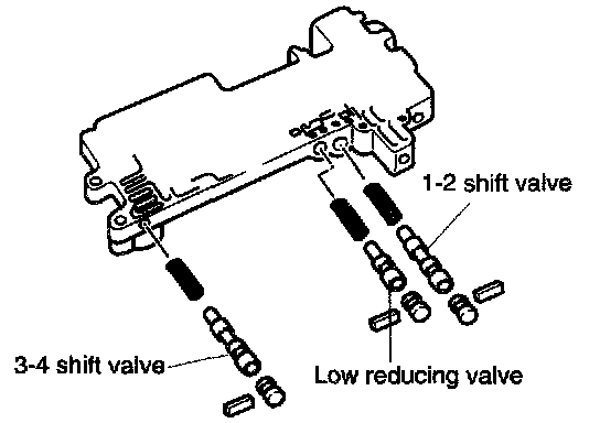1. Insert 3-4 shift spring, 3-4 shift valve and stop plug. Secure them with stop pin.