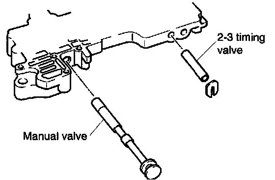 5. Insert 2-3 timing valve and 2-3 timing spring. Secure them with spring retainer.
