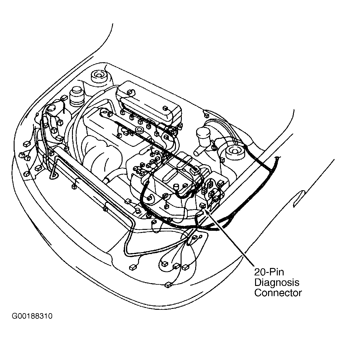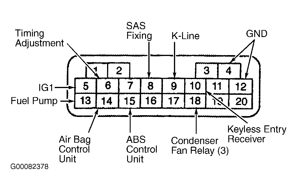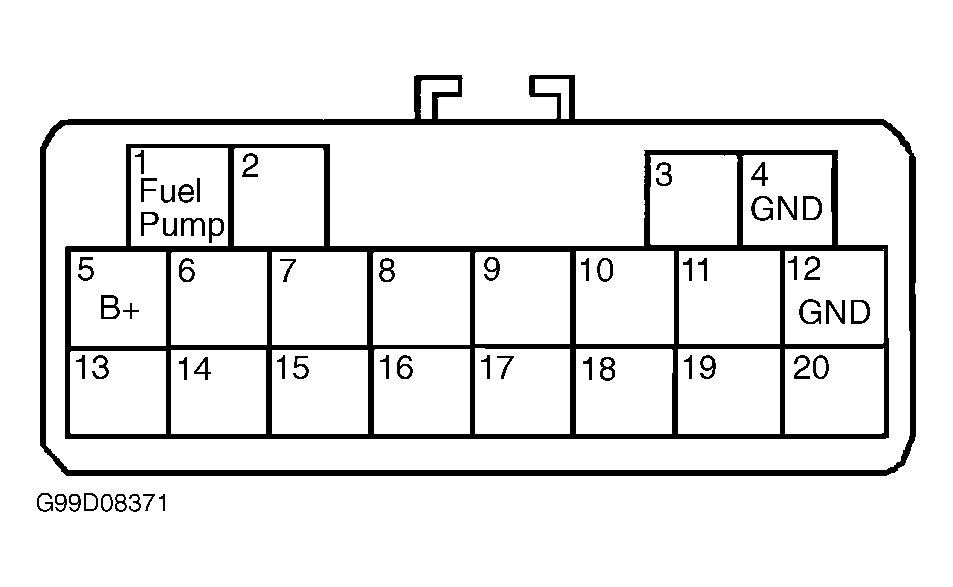 After performing any operation that requires releasing fuel pressure, fuel system should be primed to prevent long cranking times. To prime fuel system, jumper Data Link Connector (DLC) terminal FUEL PUMP and (B+). DLC on Optima & Magentis (Canadian), is located on left side under dash. On all other models, the 20-pin Diagnostic Connector is located in the engine compartment. See Fig 1, Fig 2 and Fig 3 . Turn ignition on for no longer than 10 seconds to run pump and pressurize fuel system. Turn ignition off and remove jumper wire. Check for leaks. Repair any leaks as necessary.
