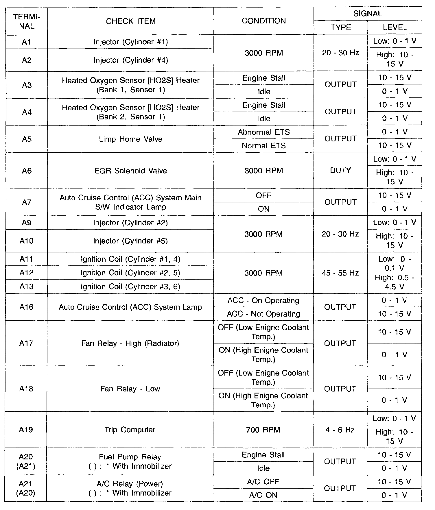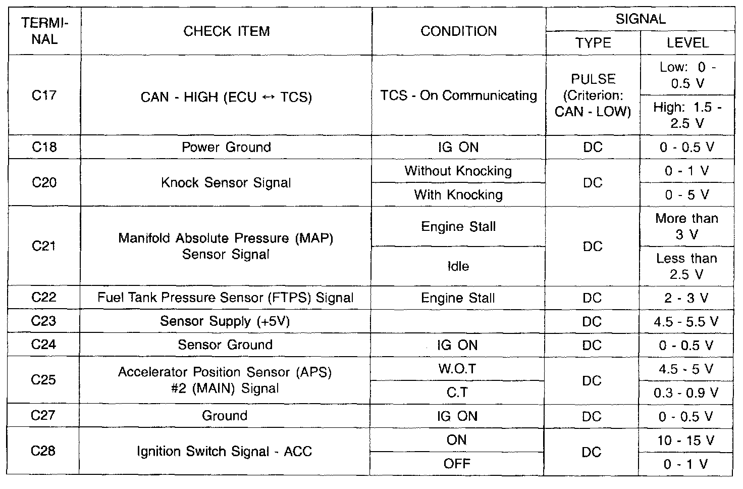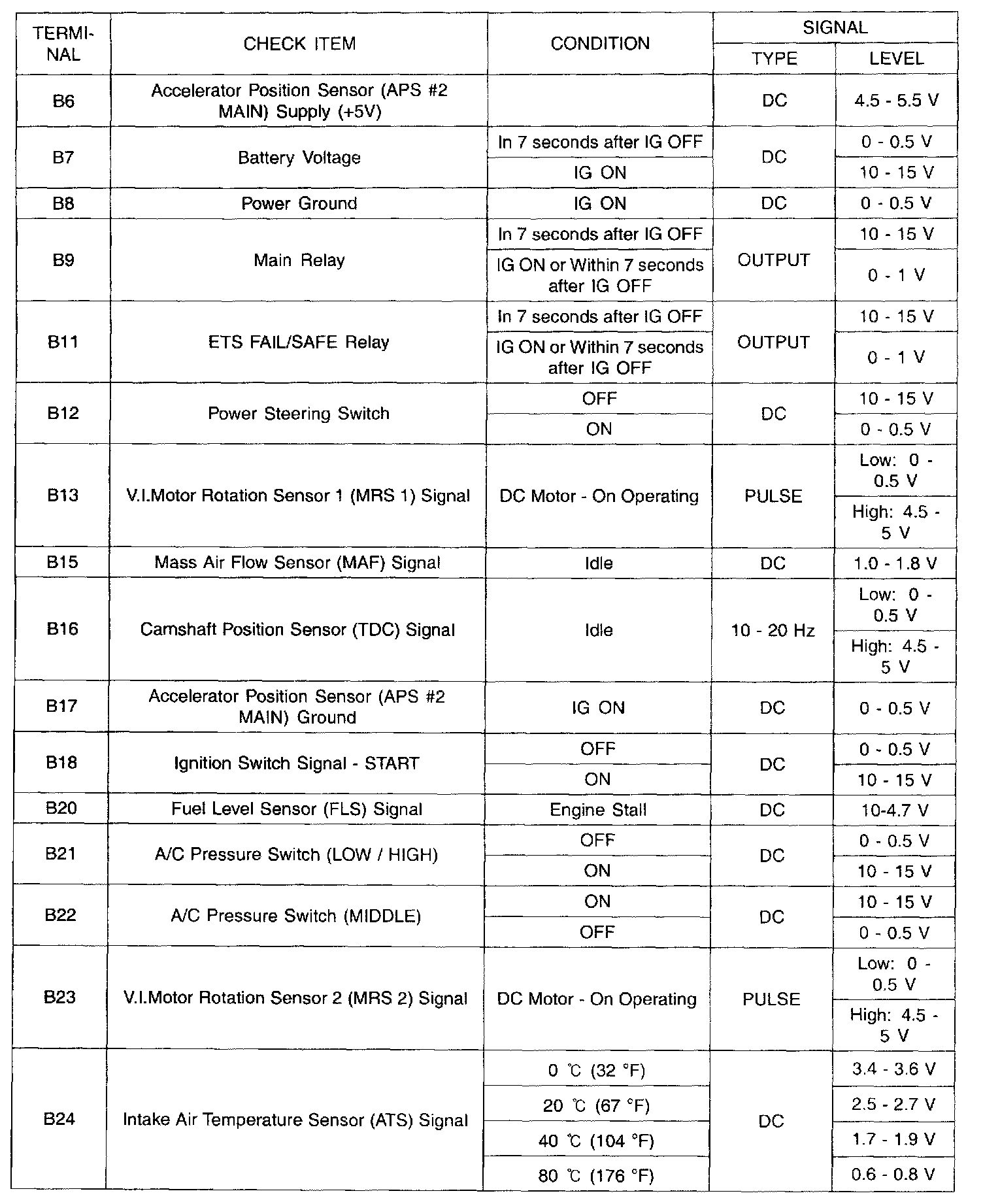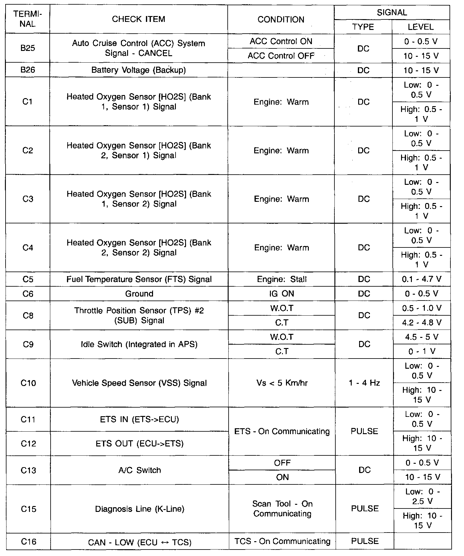 ECU Terminal In/Out Check Sheet