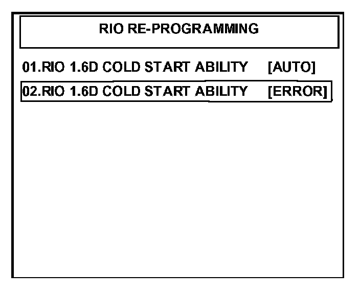 3. Select option "02. RIO 1.6D COLD START ABILITY [ERROR]" and press the "ENTER" key.