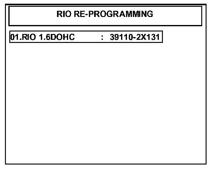 4. Select option "01. RIO 1.6DOHC : 39110-2X131" and press the "ENTER" key.