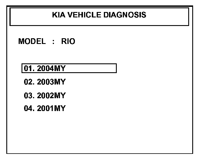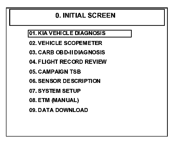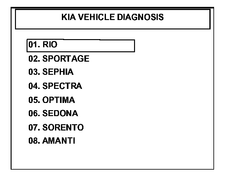 11. Select option "01. KIA VEHICLE DIAGNOSIS" and press the "ENTER" key.