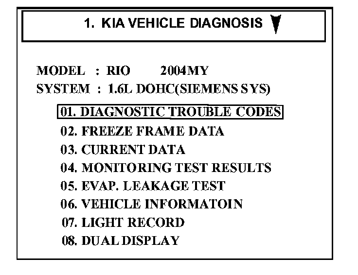 21. Select option "01. DIAGNOSTIC TROUBLE CODES" and press the "ENTER" key.