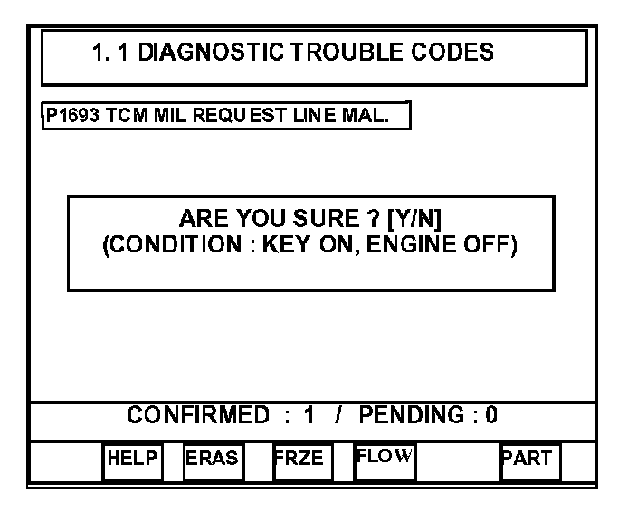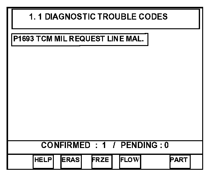 16. If the "P1693 TCM MIL REQUEST LINE MAL" code is present, select and press the "F2" key to erase the code.
