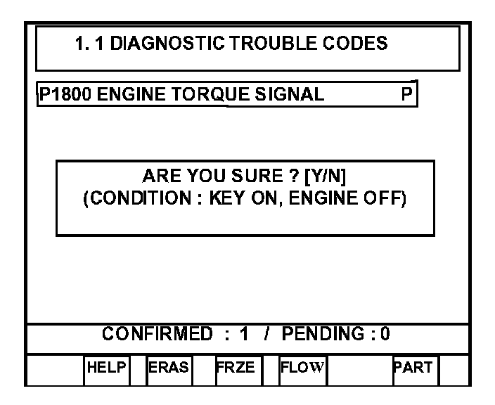 22. If the "P1800 ENGINE TORQUE SIGNAL P" code is present, select and press the "F2" key to erase the code.