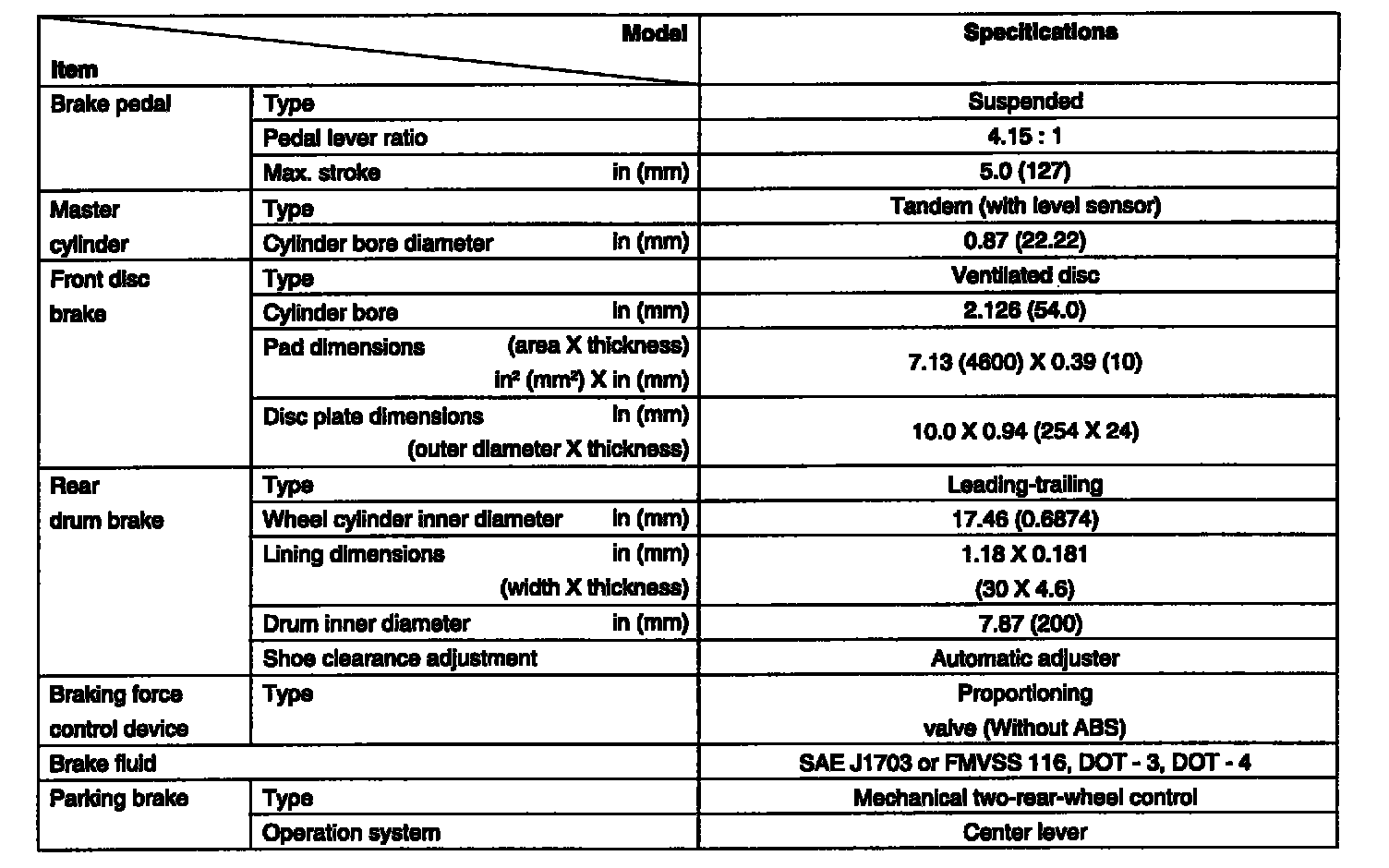 Home >> Kia >> 2004 >> Rio L4-1.6L >> Repair and Diagnosis >> Specifications >> Mechanical Specifications >> Brakes and Traction Control >> System Specifications