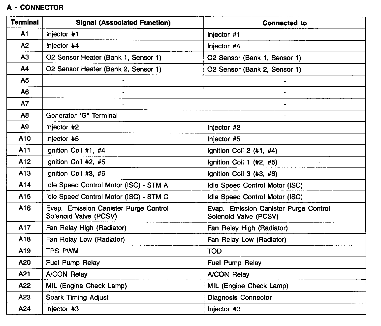 A - Connector (A1 - A24):