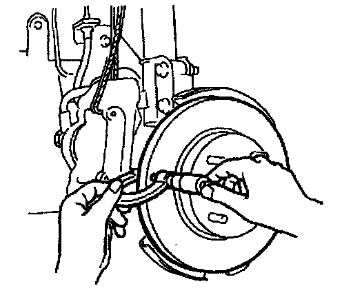 8. Prepare to catch any brake fluid. Disconnect brake hose using a flare nut wrench.