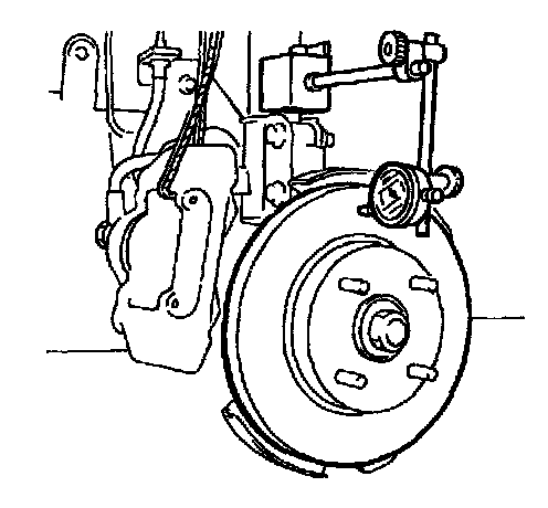 11. Mount a dial indicator and measure runout at the outer braking contact edge of the rotor.