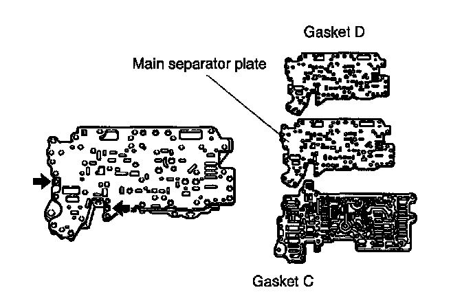 7. Set the new gasket C, main separator plate and gasket D onto main control valve body.