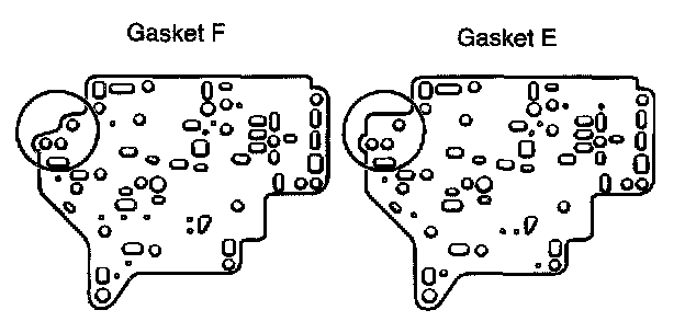 Notice: Gasket F and gasket E are not interchangeable. They are identified by their shape in area designated in illustration.