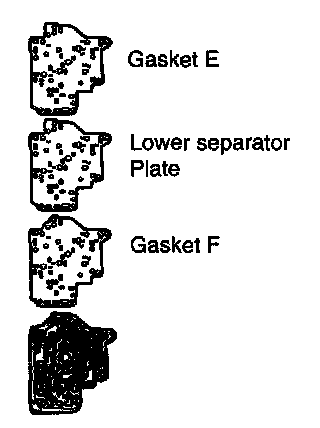 3. Set new gasket F. lower separator plate, and new gasket E onto lower valve body.