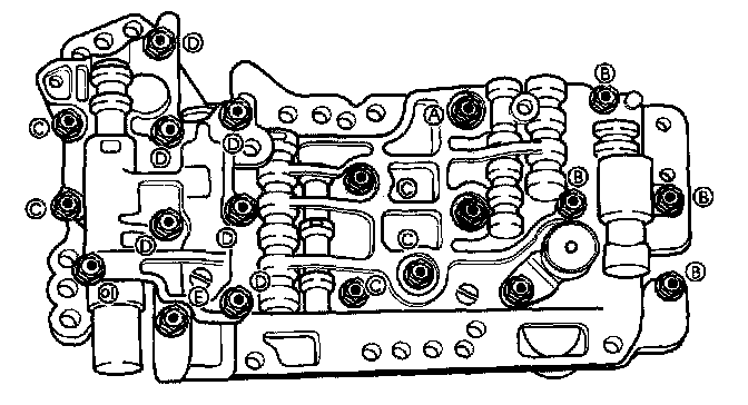 14. Set upper control valve body onto main control valve body and install nine bolts