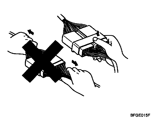 a. Never pull on the wiring harness when disconnecting connectors.