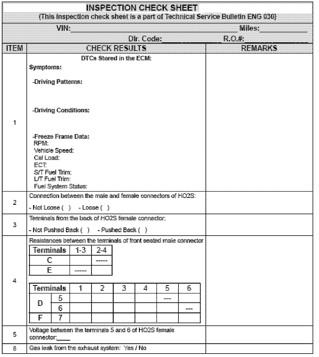 REPLACEMENT OF FRONT OXYGEN SENSOR AND PCM TERMINALS