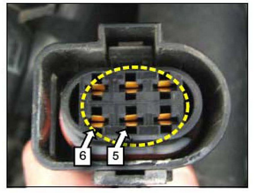 15. Turn the new terminal in the proper direction and insert into each terminal cavity install the white plastic retainer wrap electrical tape around harness and connector transition and install the connector and engine cover in reverse order of removal.