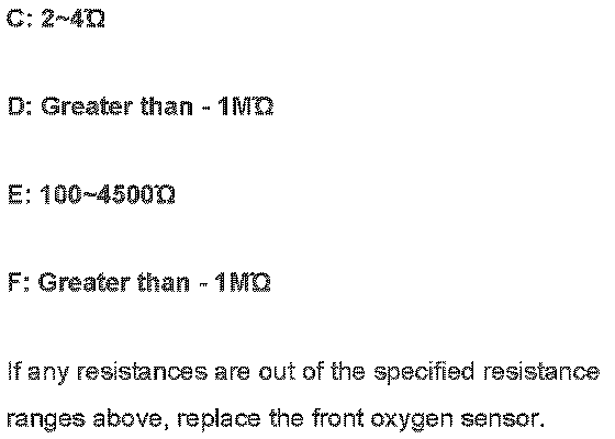 4. Measure the resistances between the terminals of the male connector of front oxygen sensor at room temperature (70°F) and record them on the check sheet.