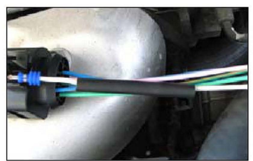 11. Prepare new same color wire with oxygen sensor connector terminal (larger than PCM side terminal) and slide the heat shrinking tube onto the wire allowing room to splice and solder.
