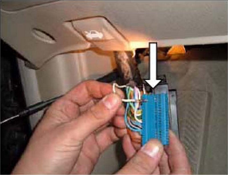 19. Release the two lock tabs at the top of the blue terminal pack and slide out of the main connector.
