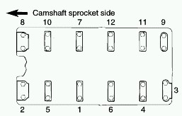 NOTE: Tighten the bearing caps to the specified torque in two or three steps as shown.